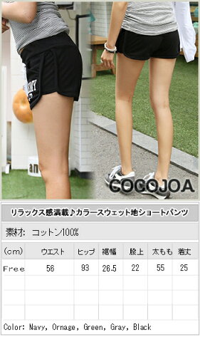 カラースウェット地ショートパンツ サイドに英字ロゴがアクセントになった可愛らしいデザイン! ウエストはゴム仕様で、ヒモで調節することもできるからとっても楽チンな着心地♪