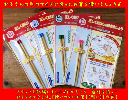 ・3 食べ物をこぼさずにきれいに食べられます ■六角ばしの特徴 【子供の手にあった長さ】のはしを、お選びすることができます。