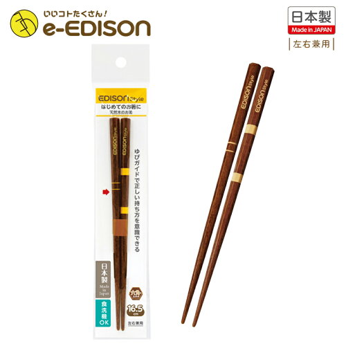 日本製!★送料無料★お箸練習【天然木のお箸】EDISON Style エジソンのお箸 トレーニング箸 ゆびガイド付きカトラリー 滑り止め加工