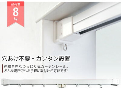 つっぱりタイプ つっぱりカーテンレール 伸縮カーテンレール テンションレール シングルタイプ Mサイズ 80〜130cm 耐荷重8kg 一般レールあす楽